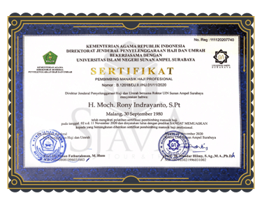 dan telah diakui serta dinyatakan LULUS dengan Predikat SANGAT MEMUASKAN oleh Direktur Jendral Penyelenggara Haji & Umroh bersama Rektor UIN Sunan Ampel Surabaya
