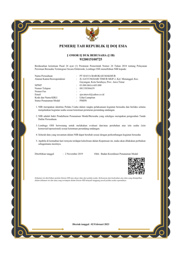 NIB no. 9120015100725